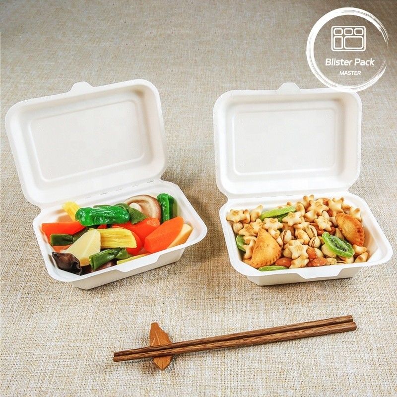 Blister Pack Master's Eco Compostable Clamshell Lunch Boxは 環境への影響を軽減したい企業にとって最適です 特にレストランイベントやフードトラックなどに環境に優しい食材を優先するレストラン.