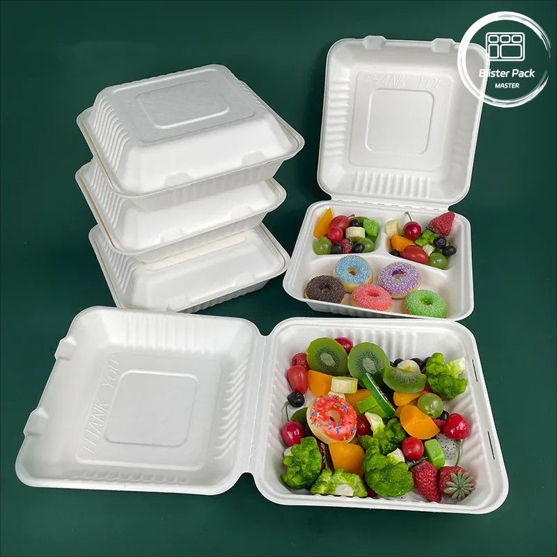 Blister Pack Masterのホームコンポスタブル・サガー・キャナ・バガッセ・クラムシェル食品容器は,持続可能なパッケージングオプションを探しているレストラン,フードトラック,キャテリング企業に最適です.頑丈で実用的なデザインで 環境に配慮した環境でのお気に入り農家市場や緑色のカフェなど